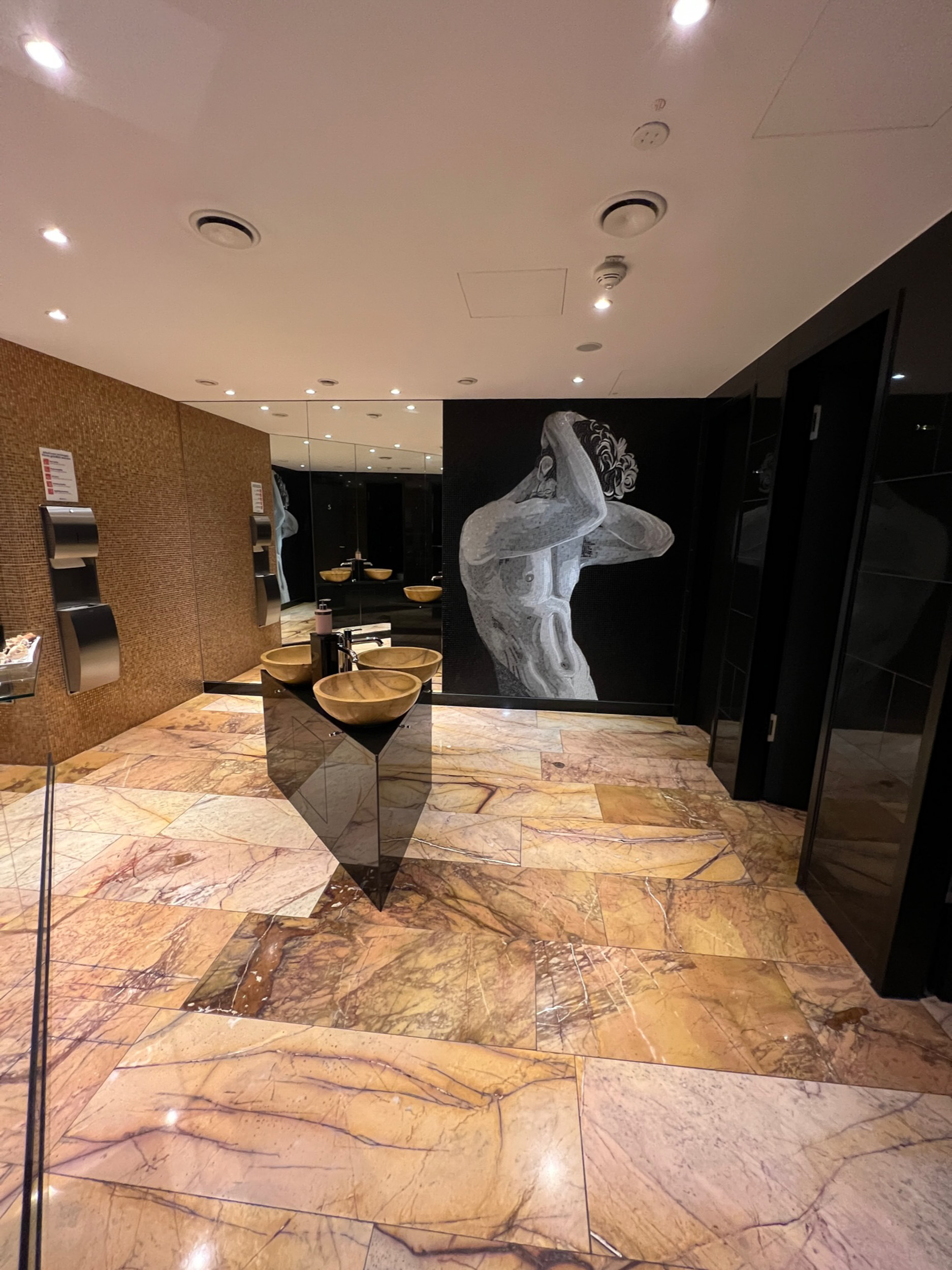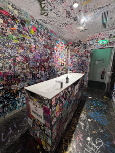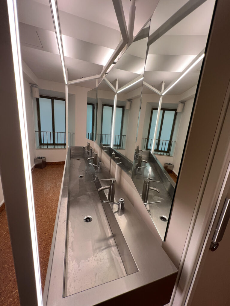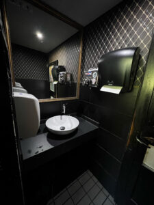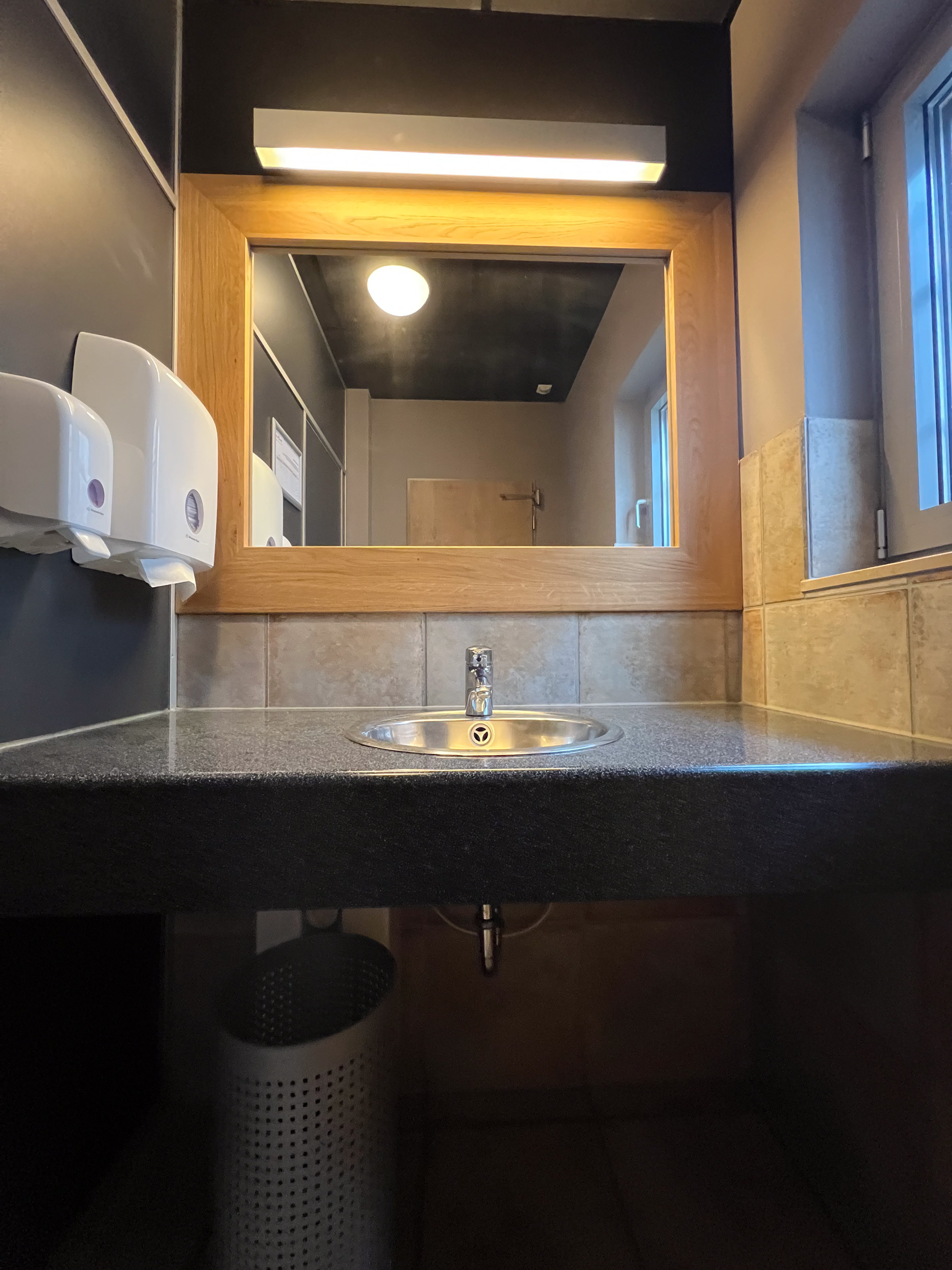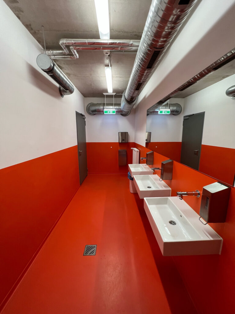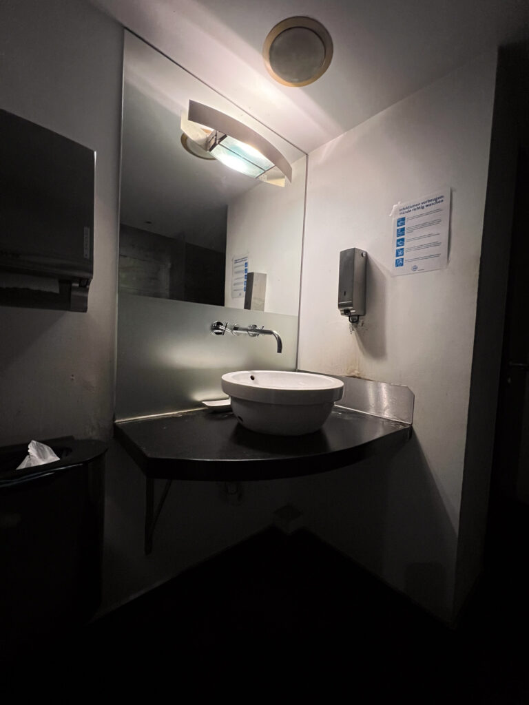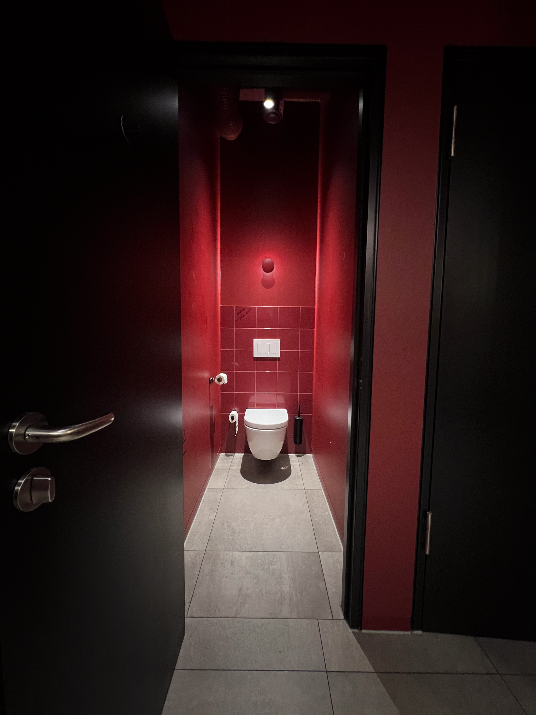 Was im Gastraum noch für Wohlbehagen sorgte, wie gedimmtes Licht, leise Musik, warme Umgebung, wird hier ins Gegenteil verkehrt.