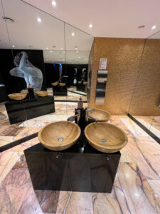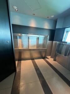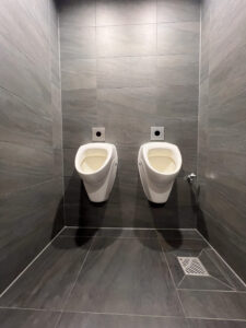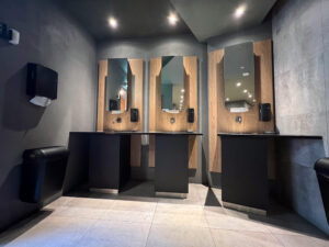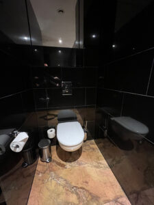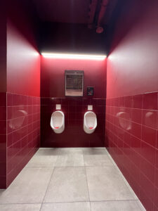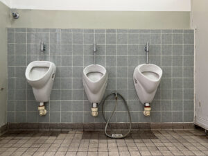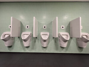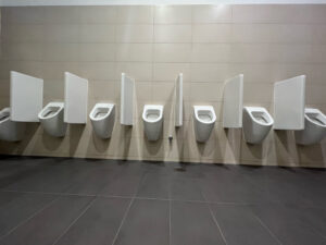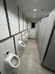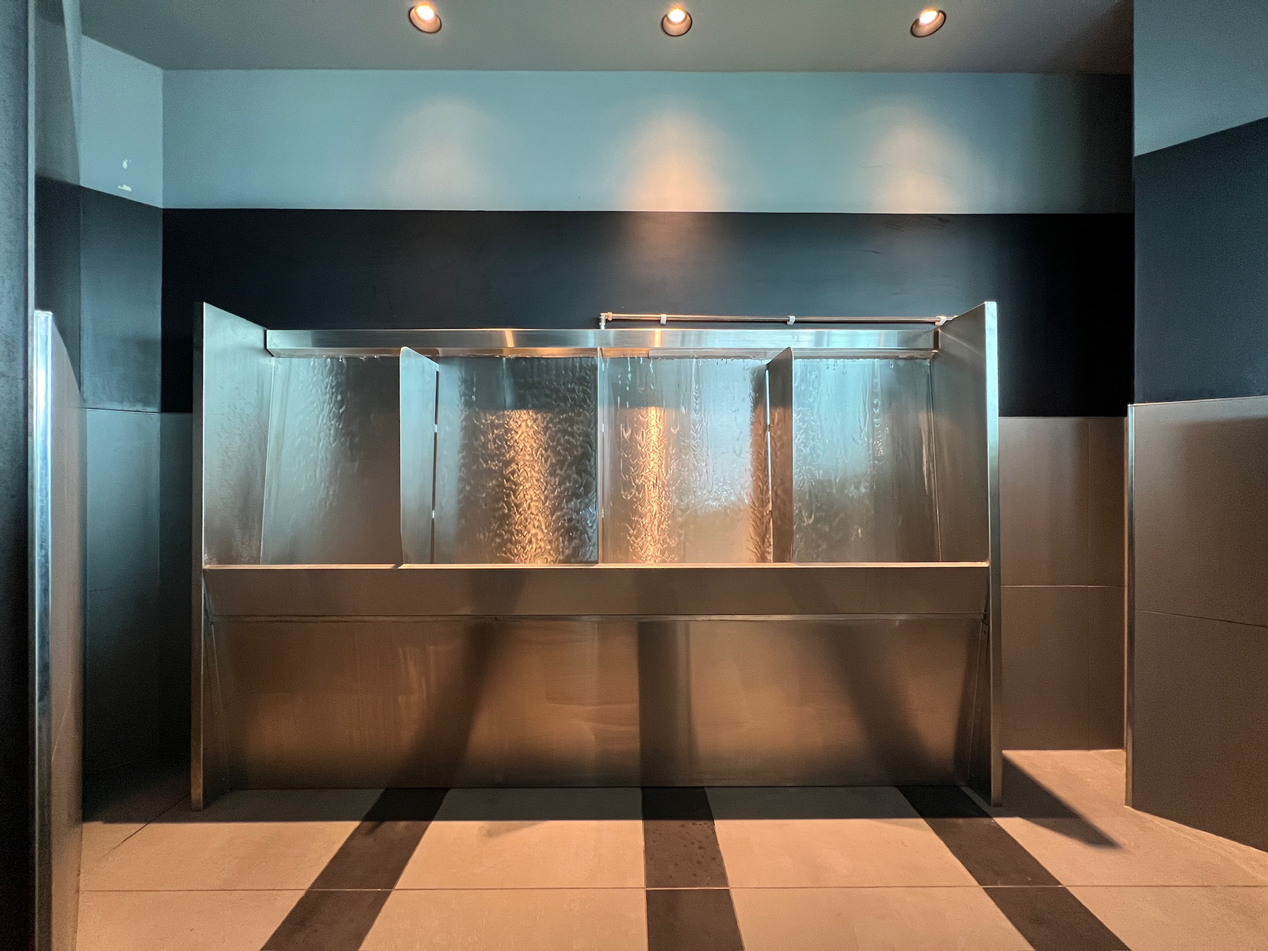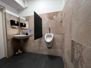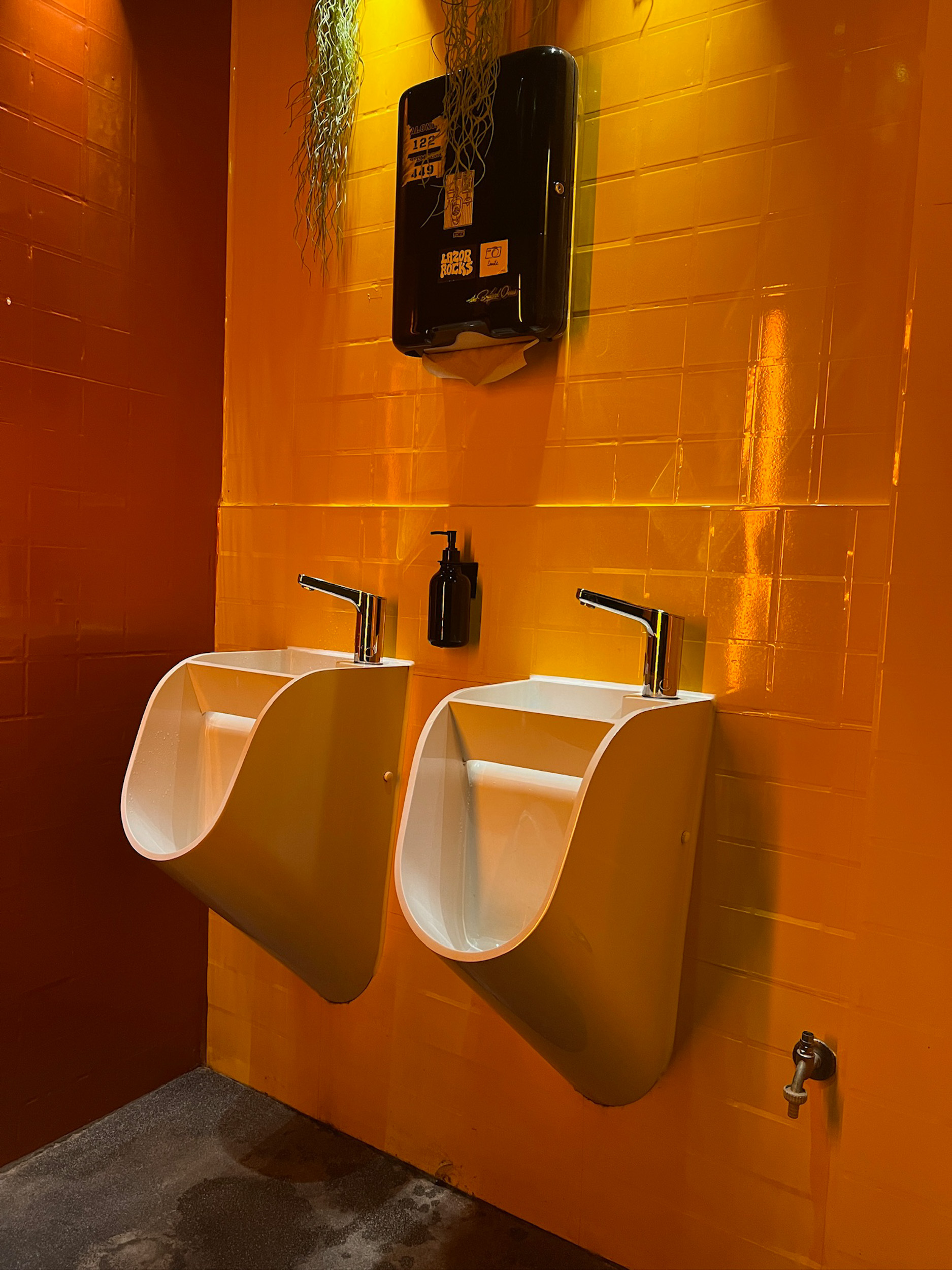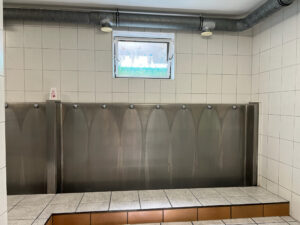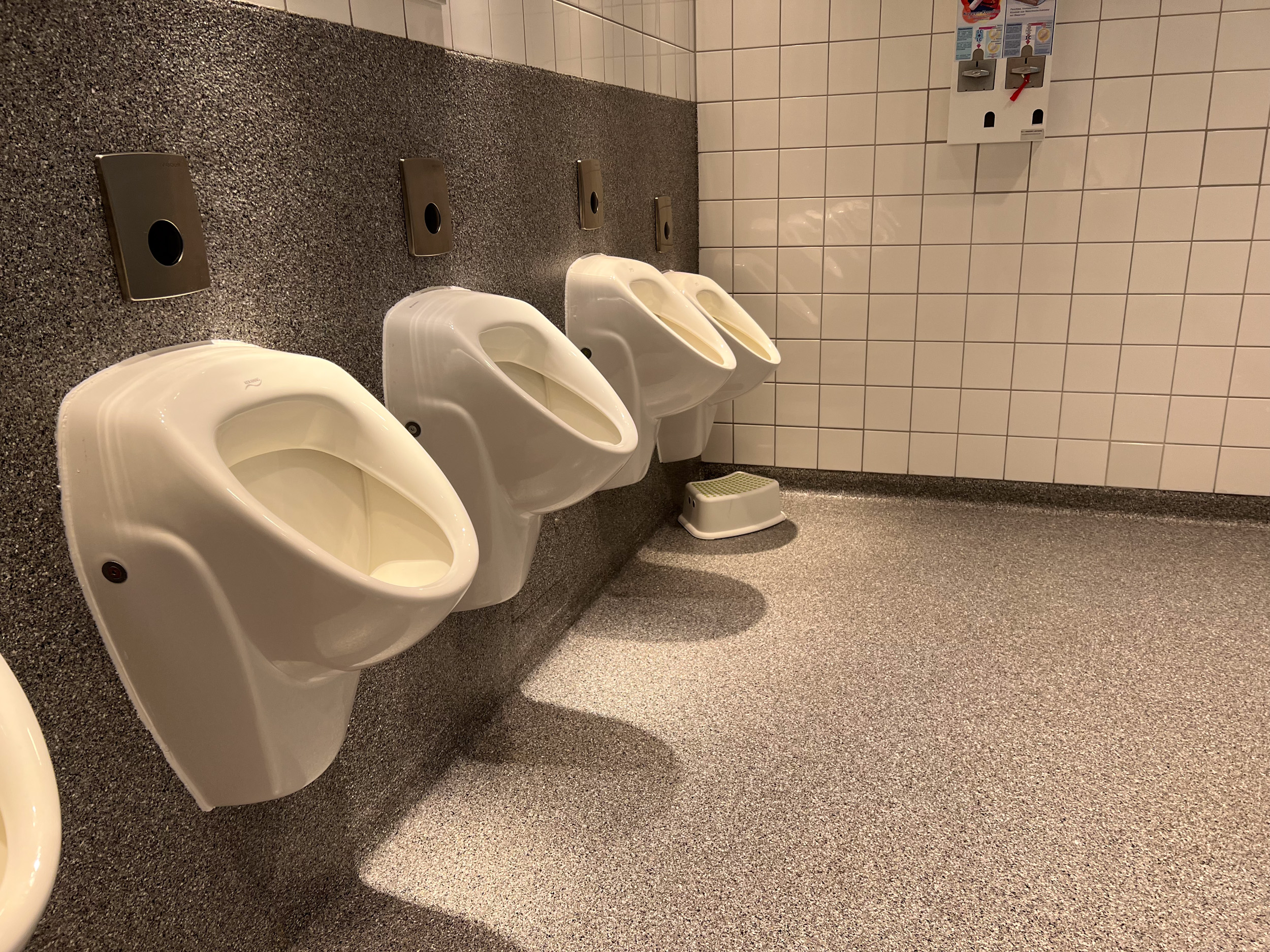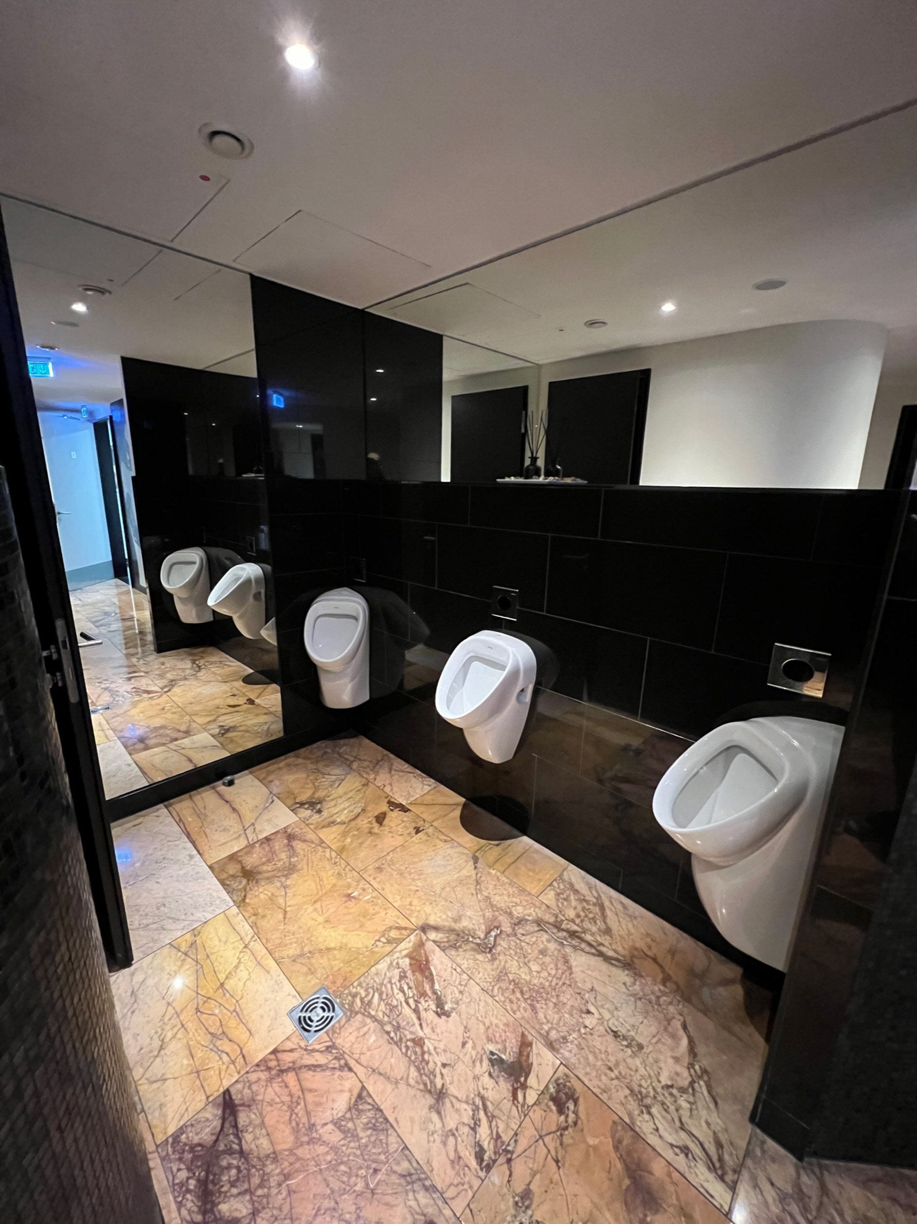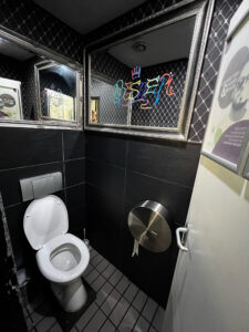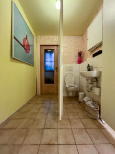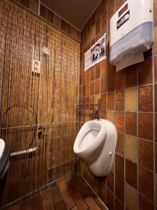 Vom „Wohlfühlen“ wie im Gastraum ist hier keine Spur mehr vorhanden. Eine Kommunikation wie sie am Tisch stattfindet gar nicht möglich. Die keramikbeschichteten Wände schmeißen dir die eigenen Worte dermaßen verstärkt wieder, dass an eine Unterhaltung überhaupt nicht zu denken ist. Daher wohl auch der Ausdruck „stilles Örtchen“ 😉 Die Kälte verweigert dir eine entspannte Haltung, sodass dein Körper dir eine einfache Erleichterung erschwert. Auch der Anblick von Schlauch und Abfluss in der Mitte des Raumes erinnert eher an ein Schlachthaus als an einen täglich zu besuchenden Ort.